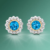 Blue Topaz Stud EarringsThese Blue Topaz Stud Earrings will certainly make a statement. Crafted in 14k white gold, the beaded style setting creates a luxurious yet simple look, perfect for any special occasion. The blue topaz stone adds a beautiful touch of subtle sparkle to your look....