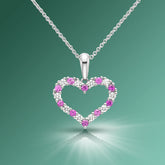 Pink Sapphire Heart RingShow your love with this sweet heart shaped sapphire ring. The center pink stone is set off by sparkling surrounding diamonds. 5MM Heart Shaped Pink Sapphire 0.17cttw diamonds 14k white gold