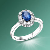 Pear Shaped Blue Sapphire and Diamond Ring - 14K White GoldBeautiful Pear Shaped Blue Sapphire and Diamond Ring Vivid 6 x 8mm Blue Sapphire, Pear Shaped, 4 Prong Setting 0.30 Cttw Round Brilliant Diamonds Diamond Color: G - H, Clarity: VS1 - VS2 Available in Platinum or 14K White Gold