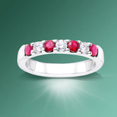 Ruby & Diamond Ring - White GoldThis Beautiful Ruby and Diamond Ring Displays Four Round Rubies and Three Round Brilliant Diamonds, Set in 14K White Gold. This Timeless Design is a Sure Winner! 0.26 CTTW Round Brilliant Diamonds, Color: H - I, Clarity: VS