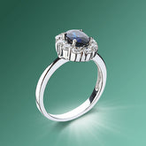 Pear Shaped Blue Sapphire and Diamond Ring - 14K White GoldBeautiful Pear Shaped Blue Sapphire and Diamond Ring Vivid 6 x 8mm Blue Sapphire, Pear Shaped, 4 Prong Setting 0.30 Cttw Round Brilliant Diamonds Diamond Color: G - H, Clarity: VS1 - VS2 Available in Platinum or 14K White Gold