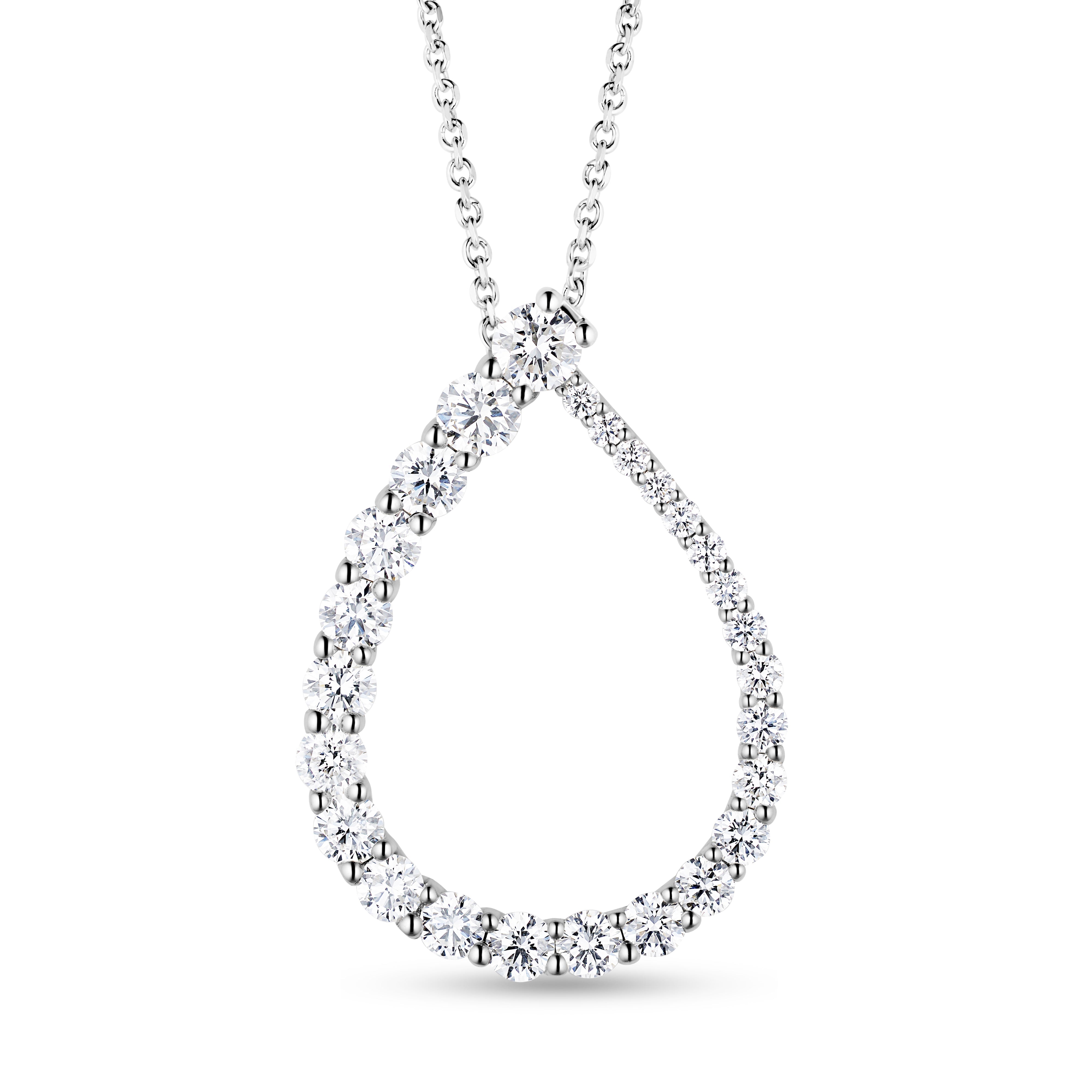 14K WHITE GOLD TEARDROP SHAPE PENDANT ROUND BRILLIANT DIAMONDS 1.0 CTW 18" LONG ADJUSTABLE CHAIN