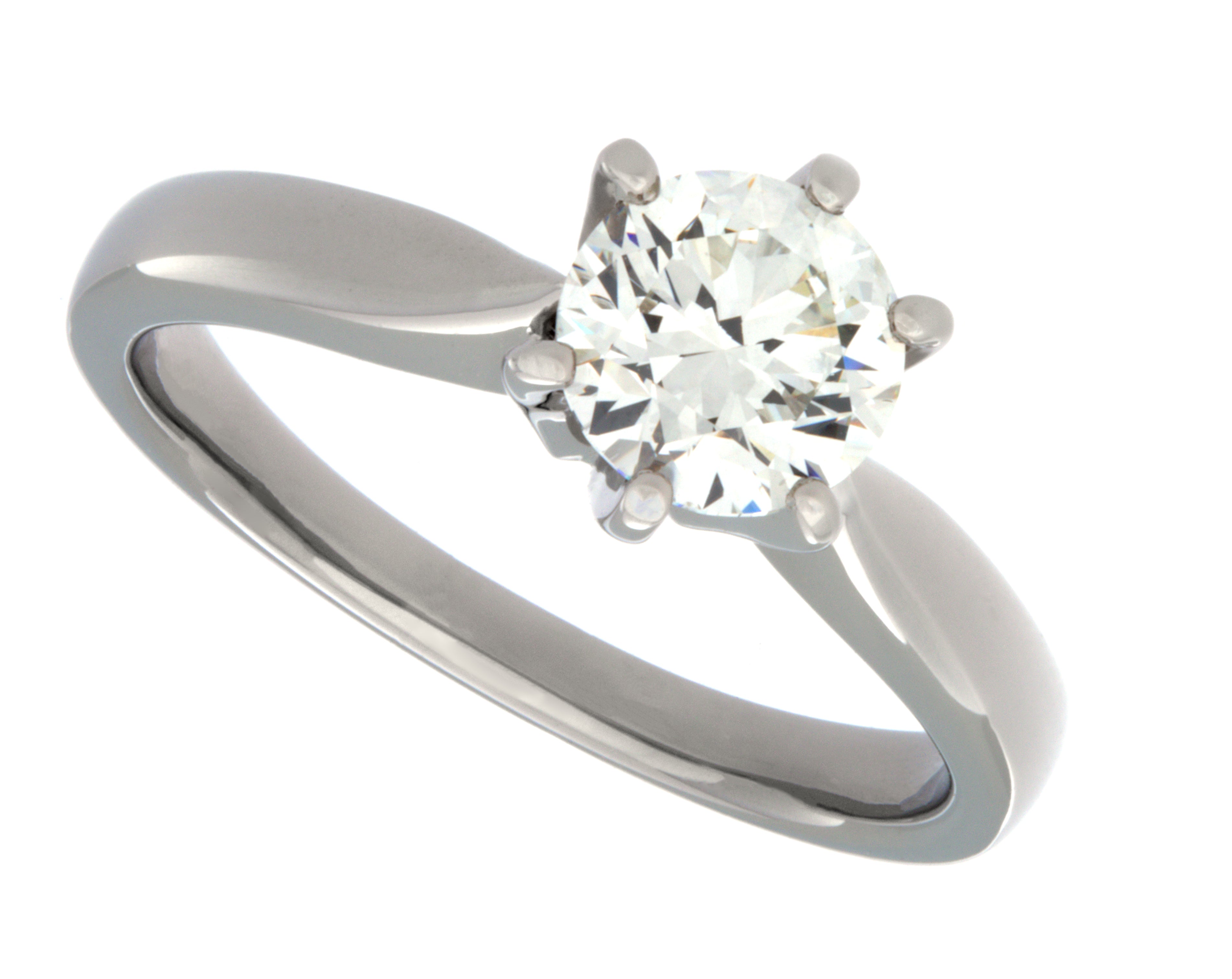 This Beautiful Solitaire Diamond Engagement Ring Features a Magnificent One Carat Round Brilliant Diamond Set in a Six-Prong Platinum Ring!