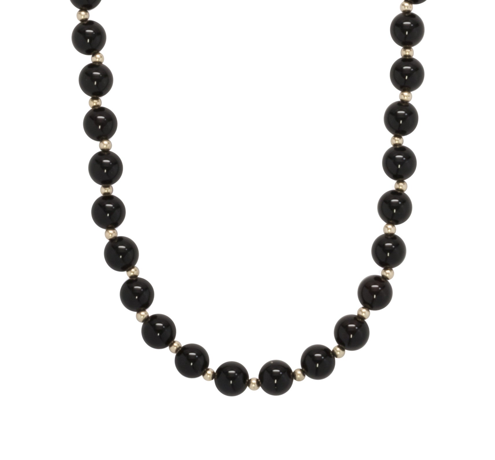 8mm Polished Black Onyx 3mm 14K Yellow Gold Beads 14K Yellow Gold Ball Clasp with French Wire Finish