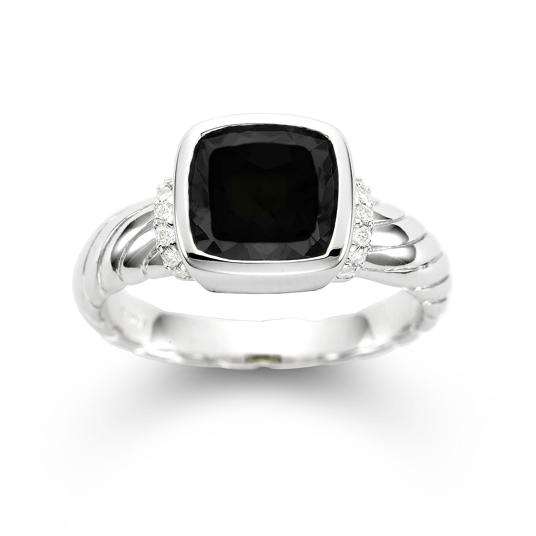 This striking Black Onyx & Diamond Ring is crafted with 14k white gold, designed to last. A classic combination of modern design and materials, this eye-catching ring will make a beautiful and timeless addition to any jewelry collection.