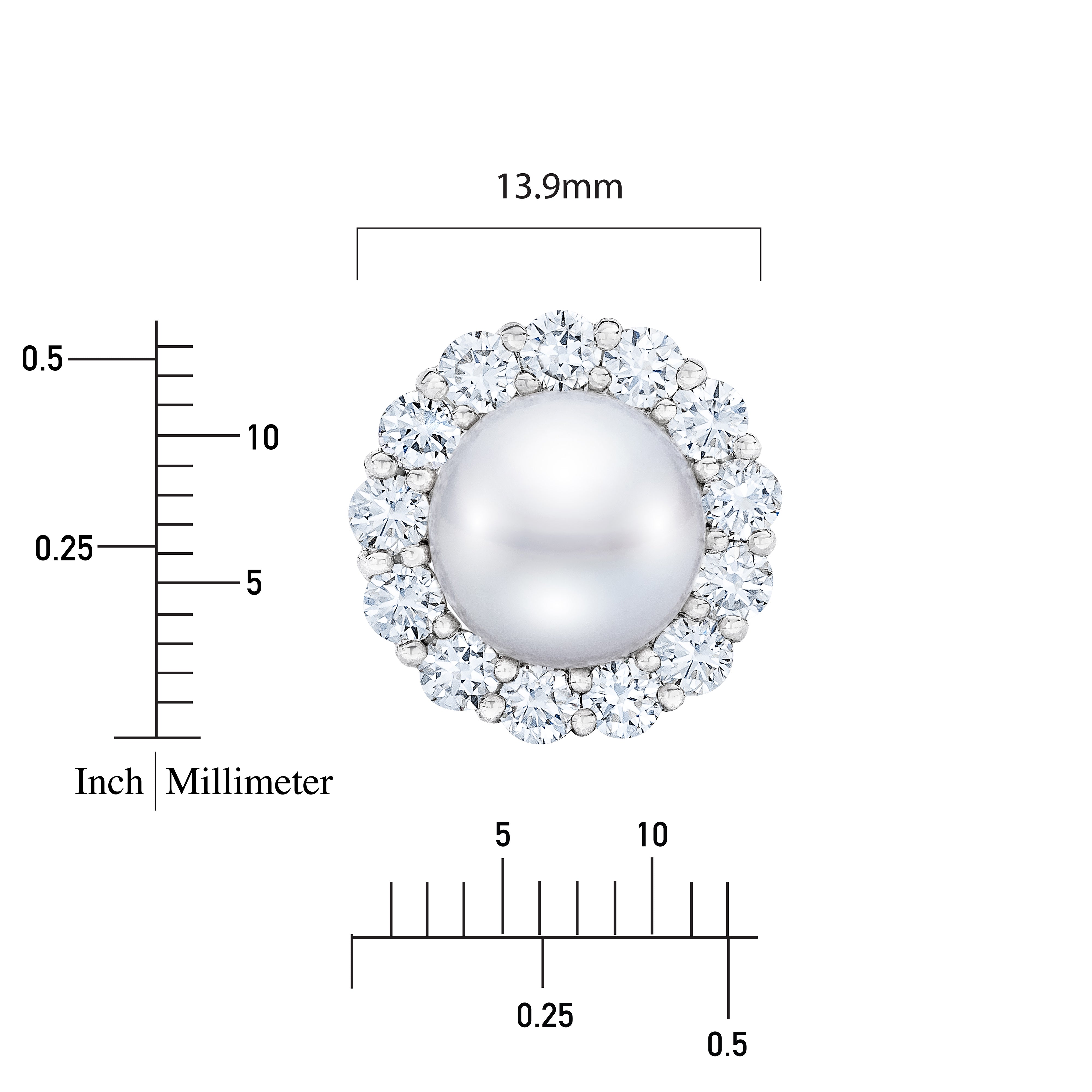 14K WHITE GOLD FRESHWATER PEARL EARRINGS WITH ROUND BRILLIANT DIAMOND HALO WHITE CULTURED FRESHWATER PEARLS 9-10MM ROUND BRILLIANT DIAMONDS 2.0 CTW