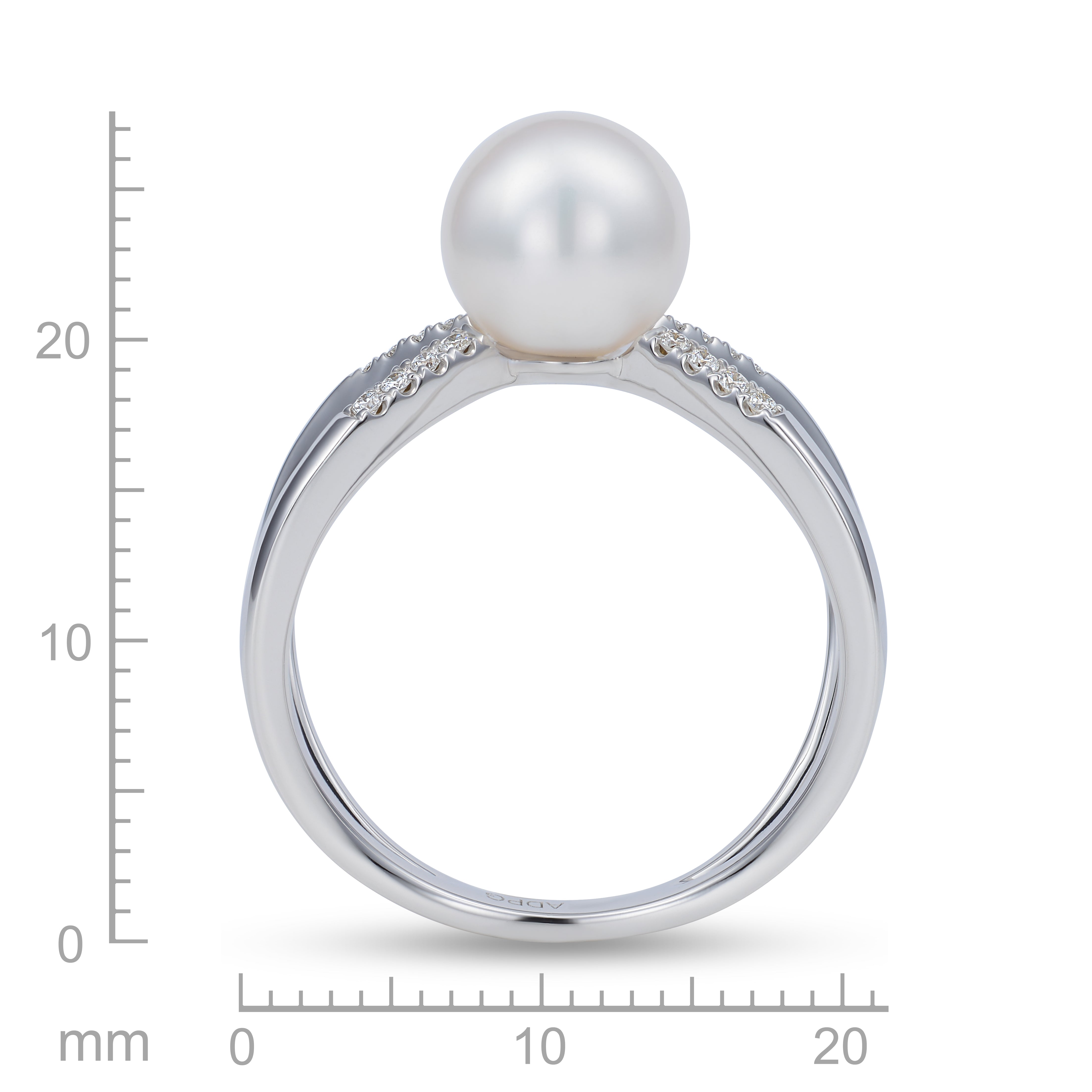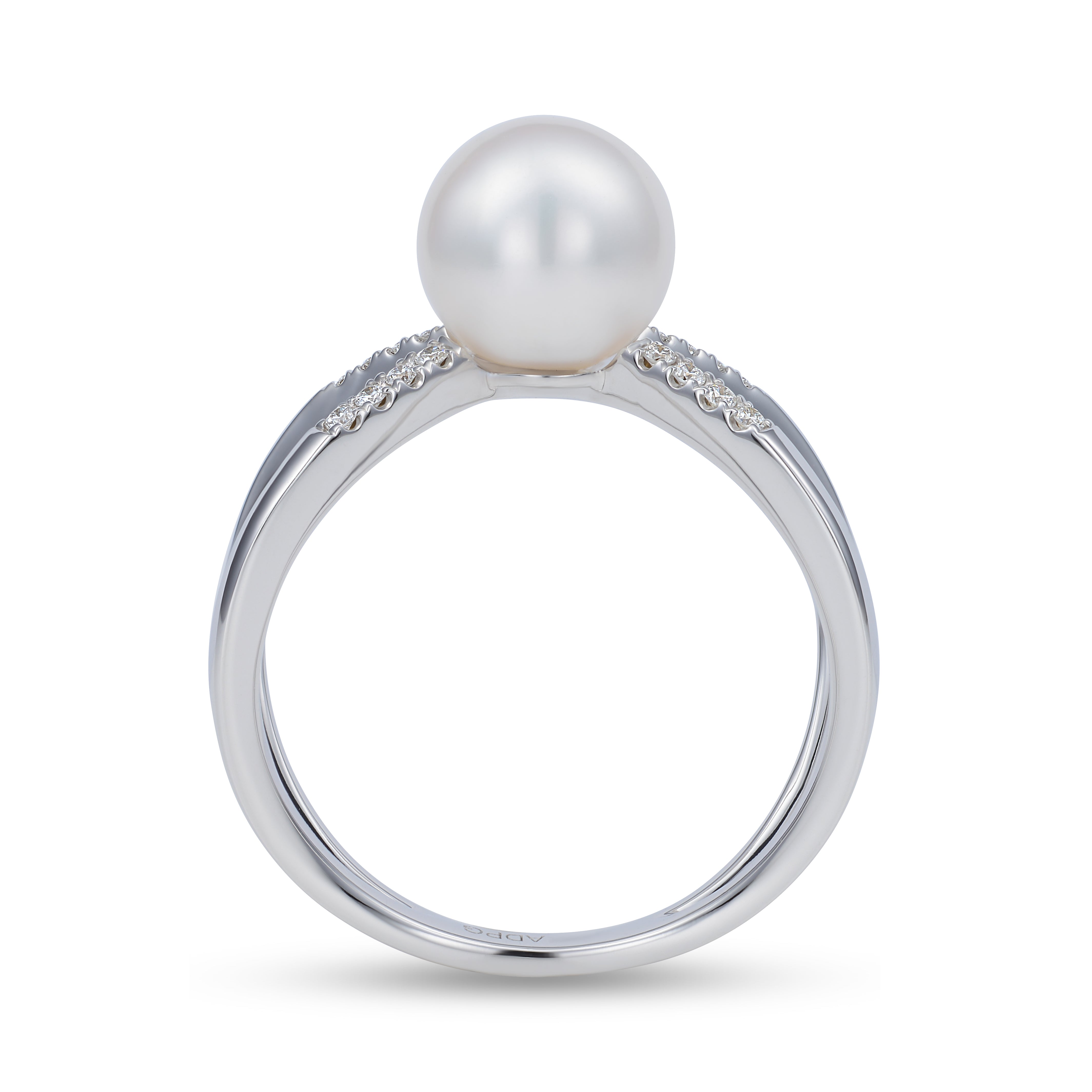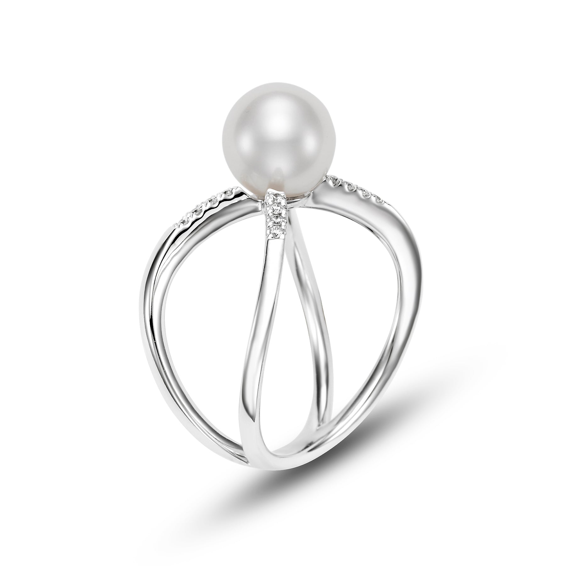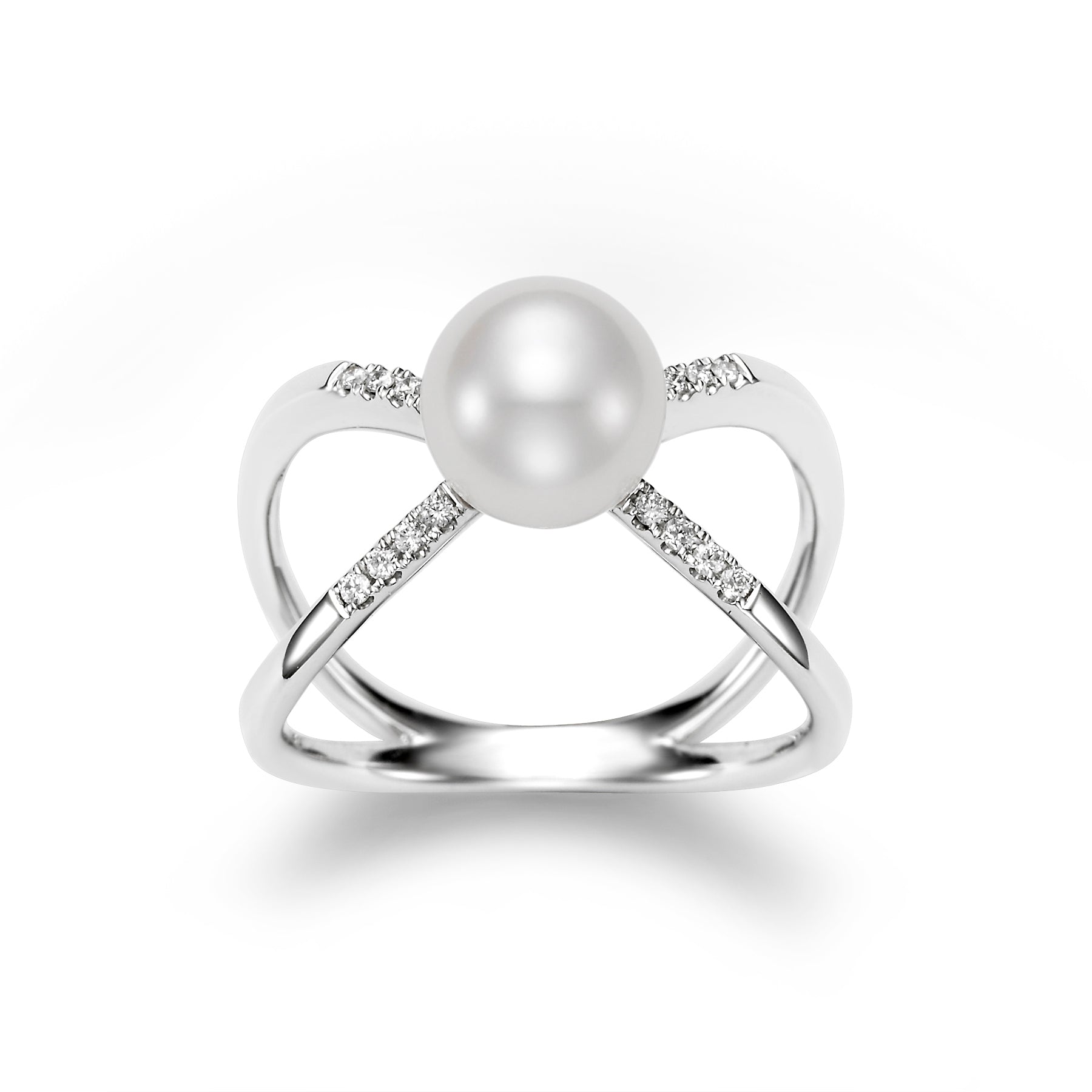 14K WHITE GOLD DIAMOND AND FRESHWATER PEARL CRISSCROSS RING CULTURED FRESHWATER PEARL 8-8.5MM ROUND BRILLIANT DIAMONDS 0.08 CTW RING SIZE 7