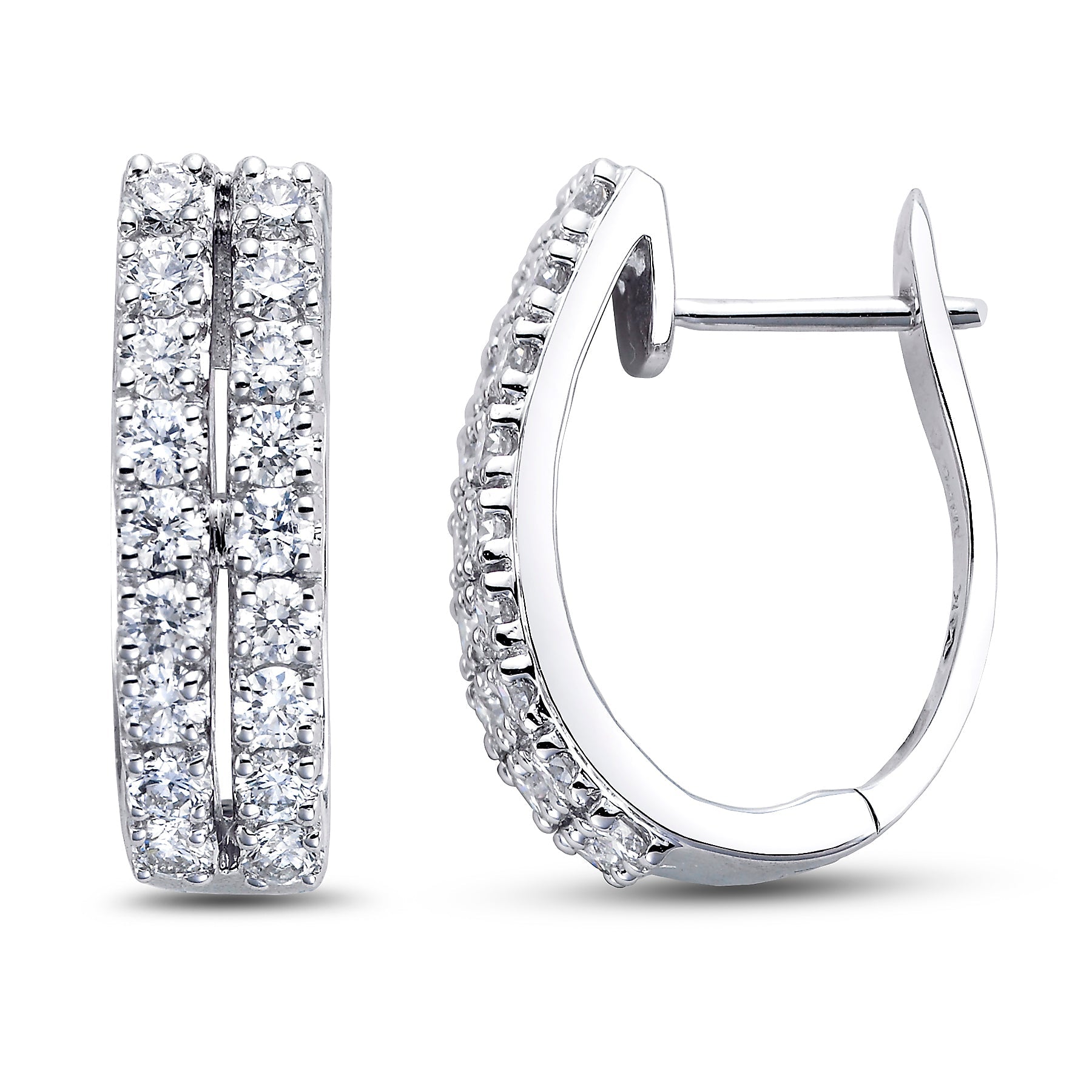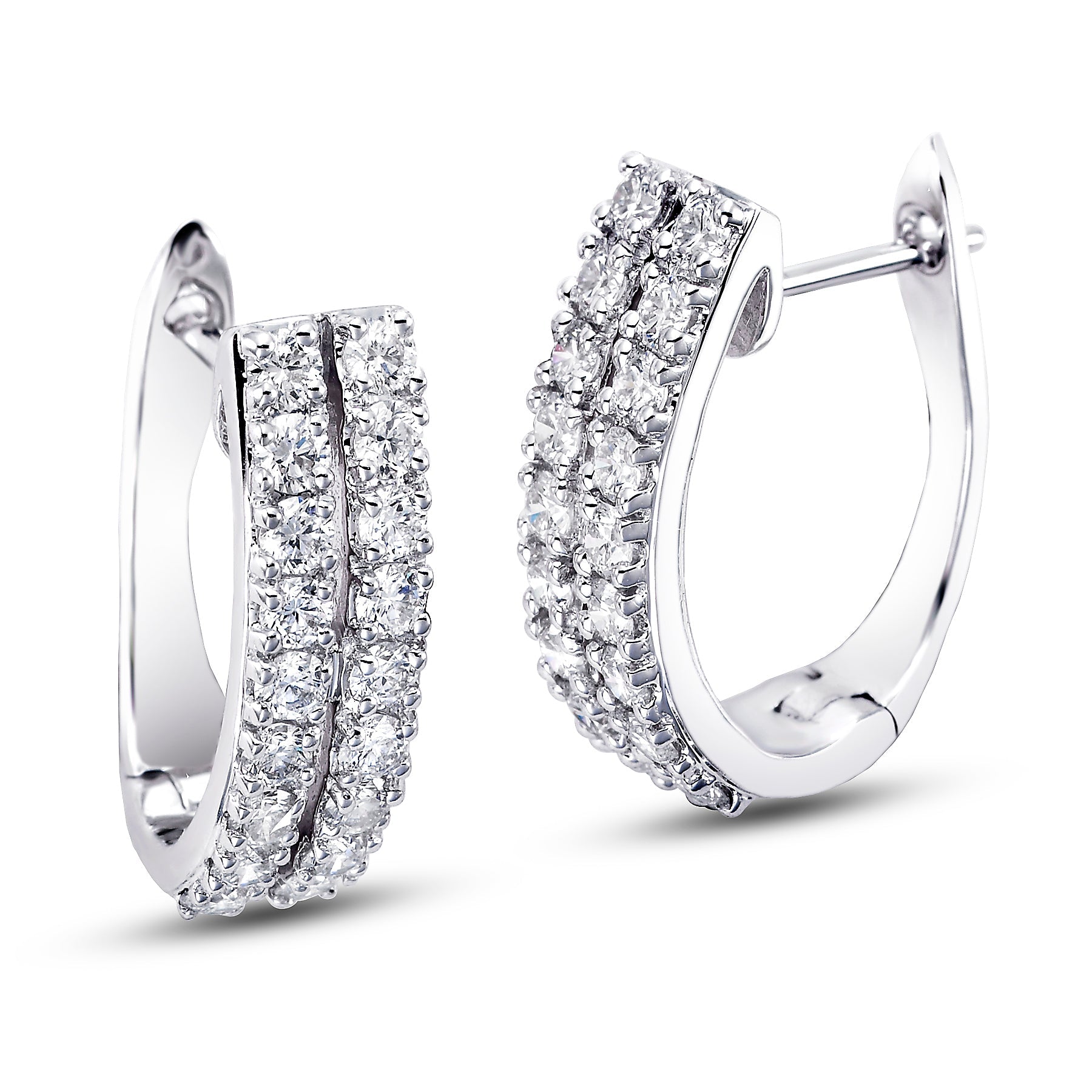 14K WHITE GOLD DIAMOND HUGGIE EARRINGS ROUND BRILLIANT DIAMONDS 1.10 CTW