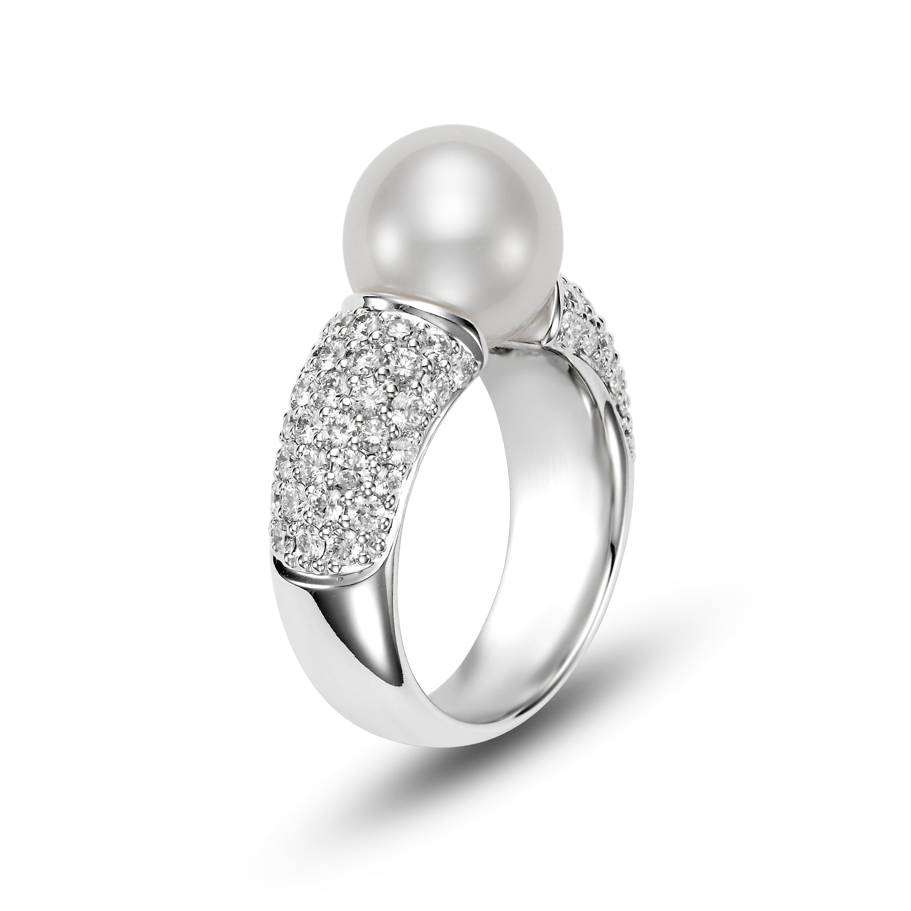 White South Sea Pearl Ring with Diamond Pavé